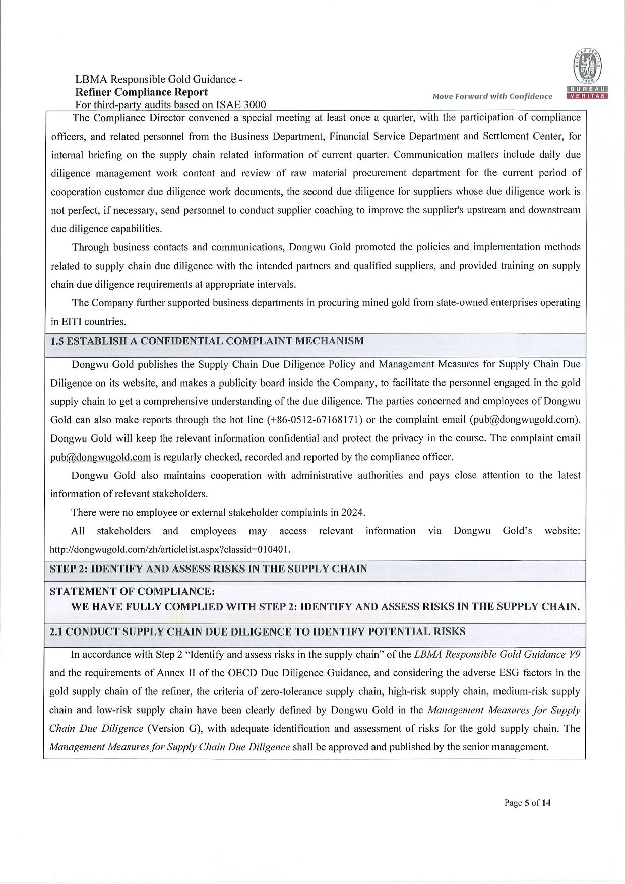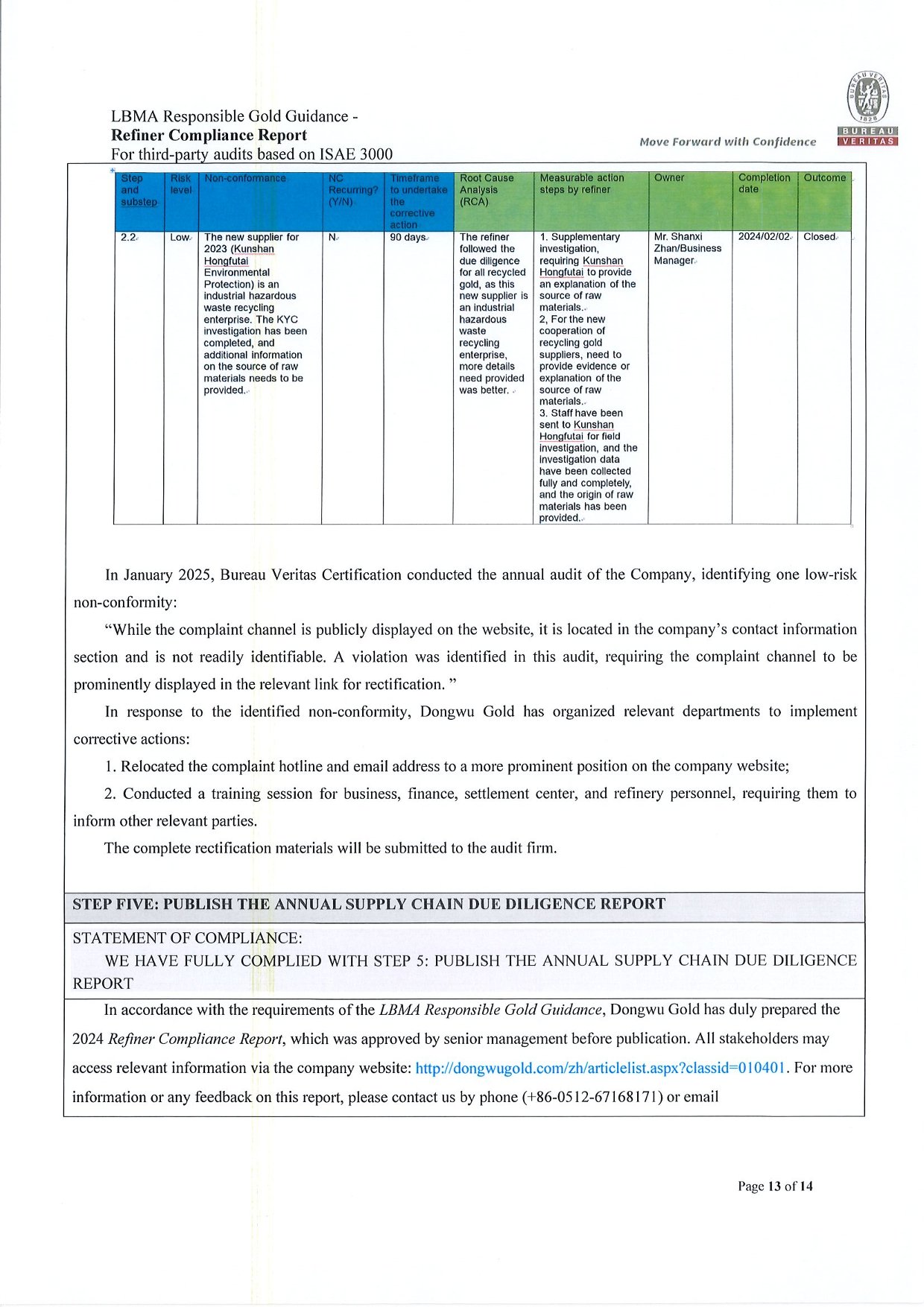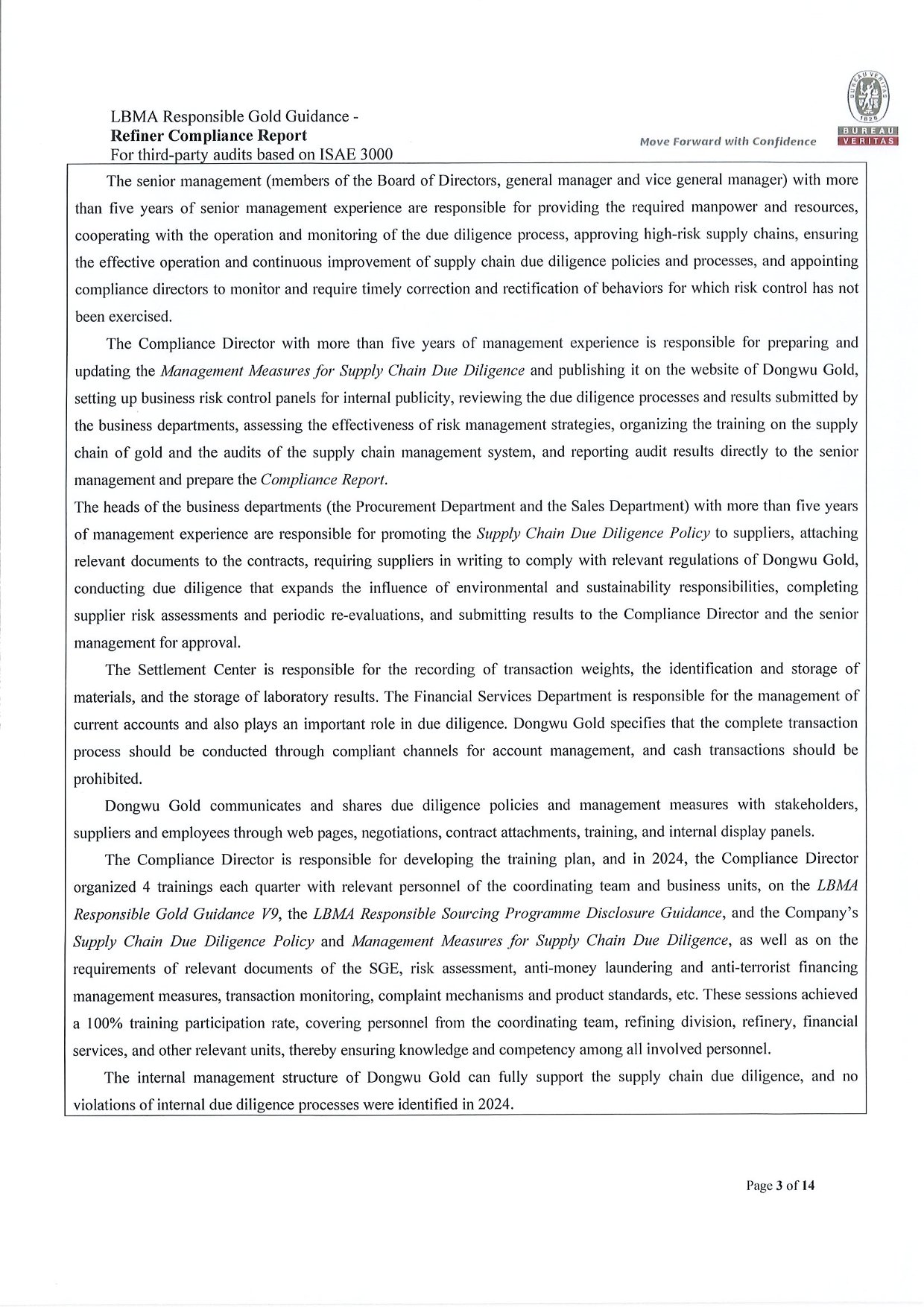 Dongwu Gold Refiner Compliance Report 2024
