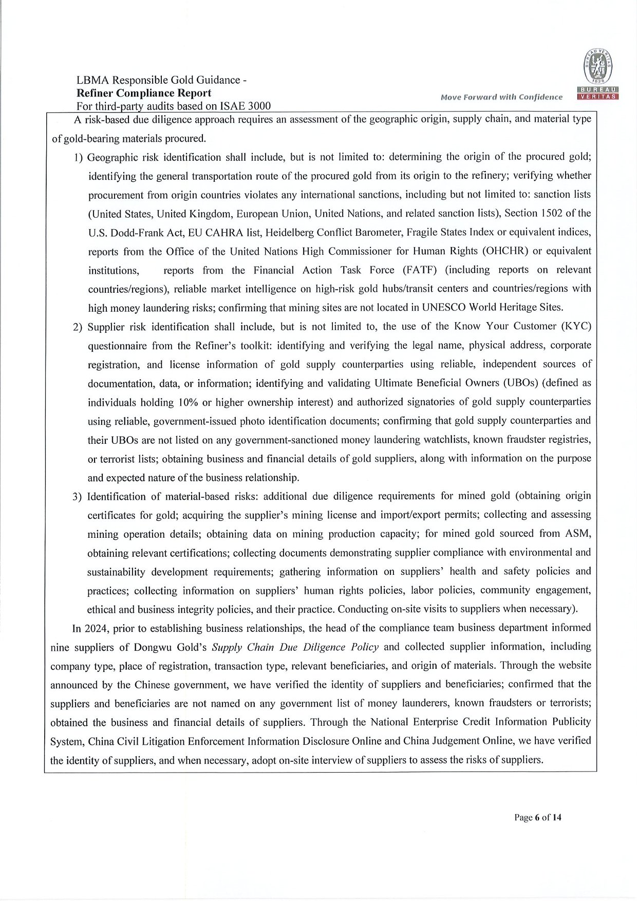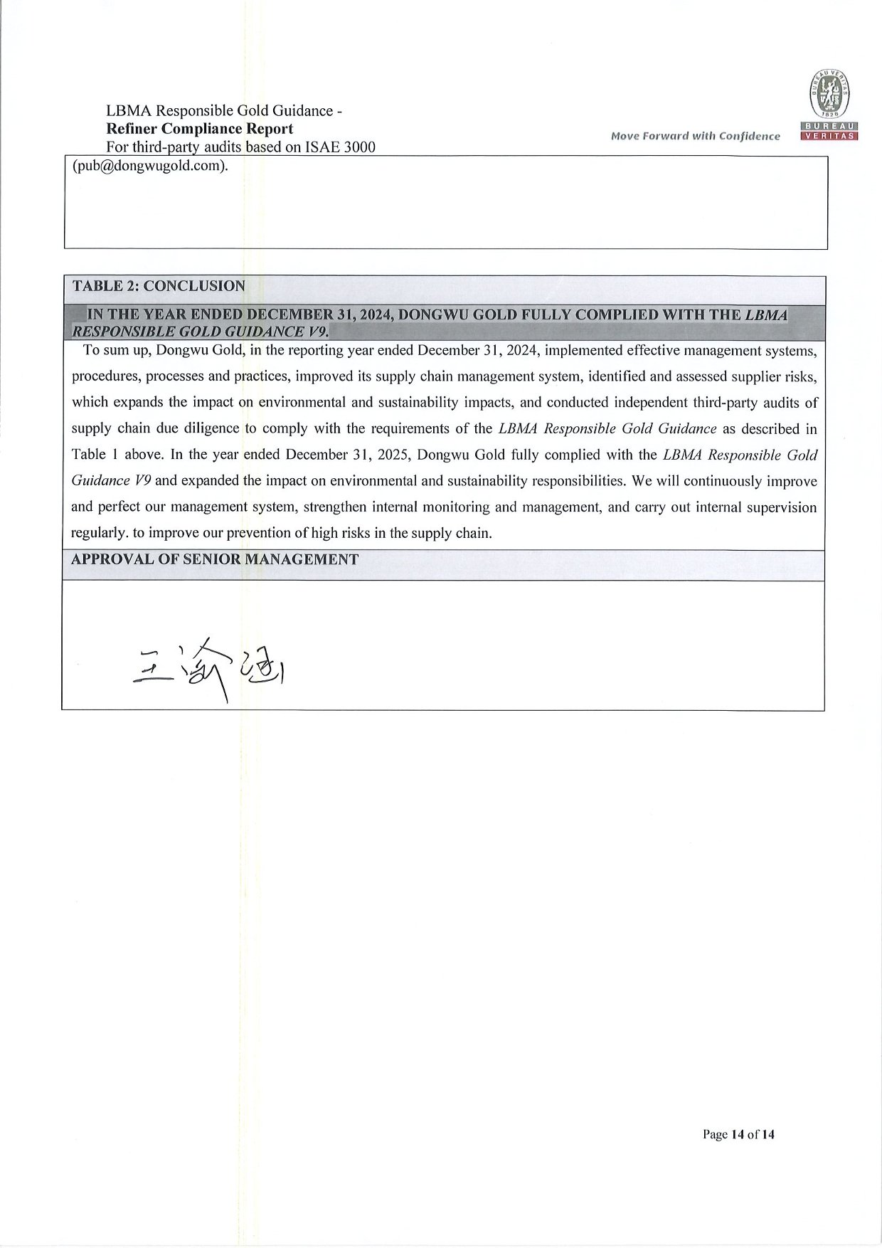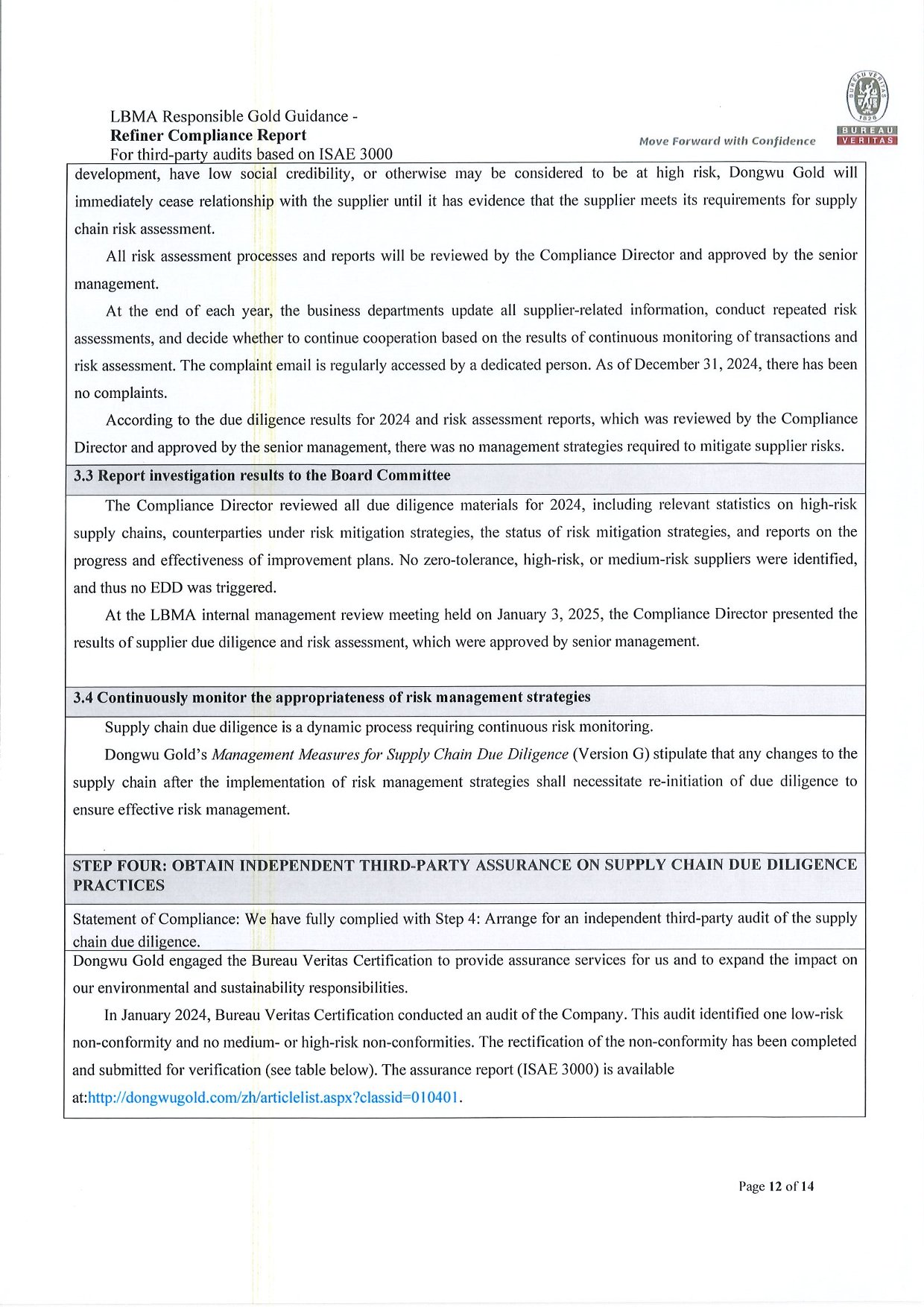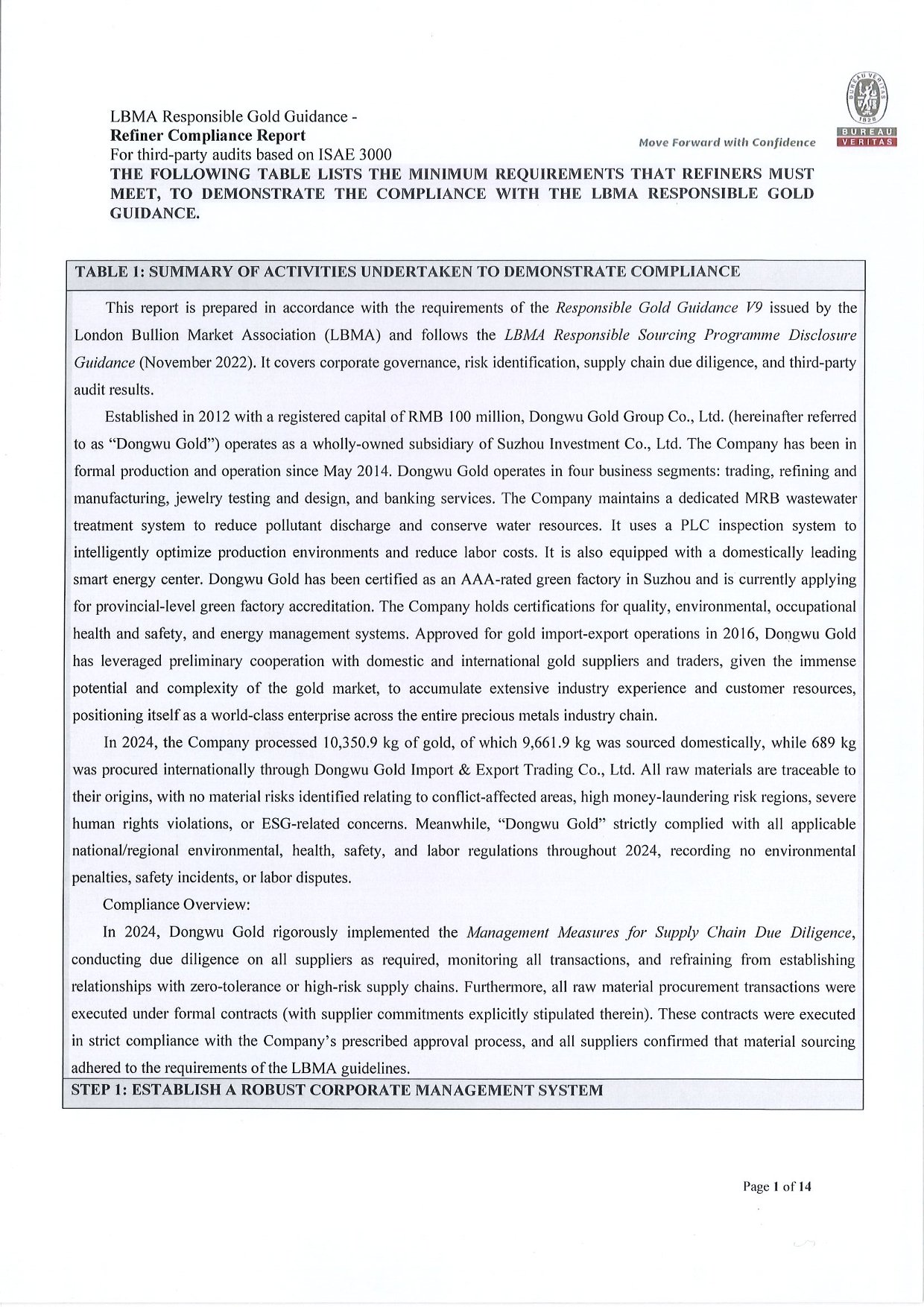 Dongwu Gold Refiner Compliance Report 2024